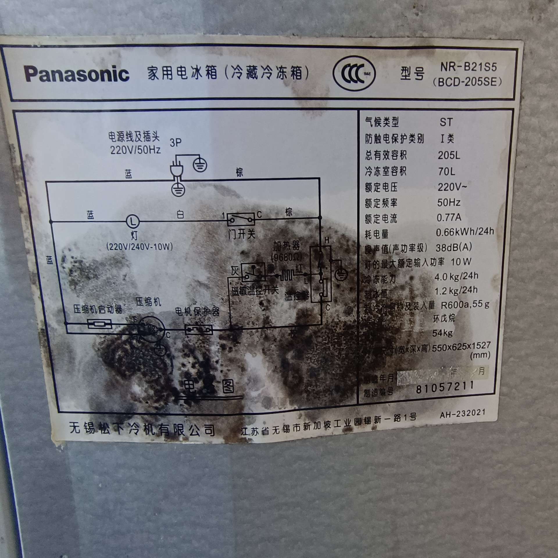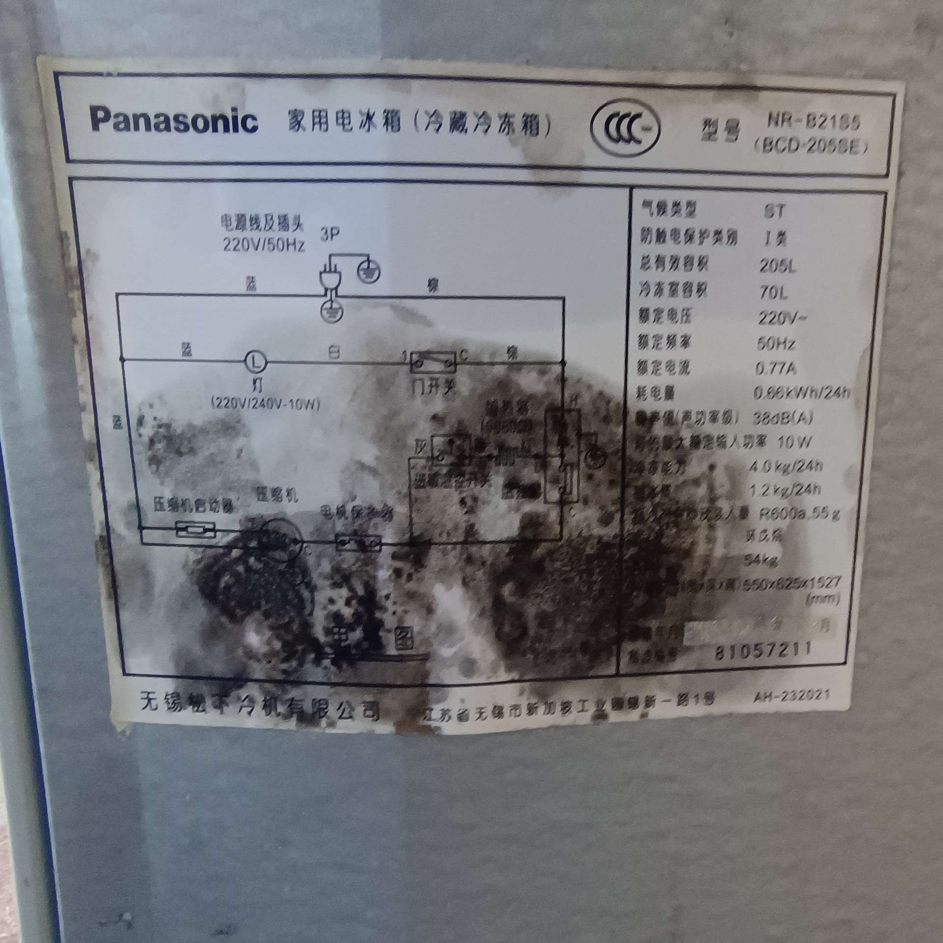 (包送)松下双门205升冰箱转让