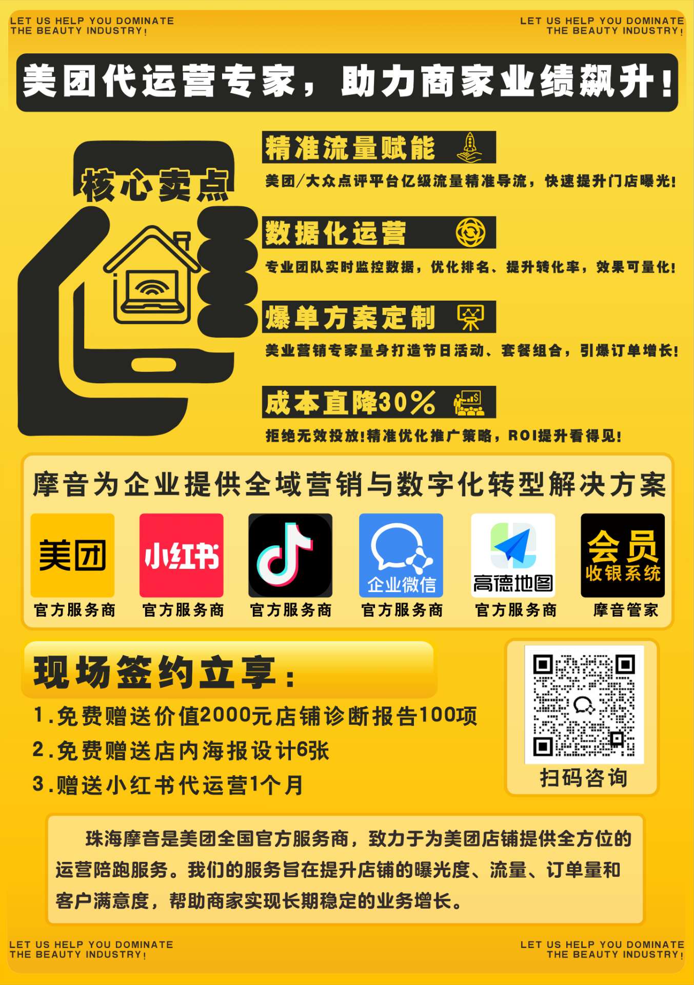 大家有相关业务需求的,想利用美团、大众点评平台给门店赋能的,可以私信与我。